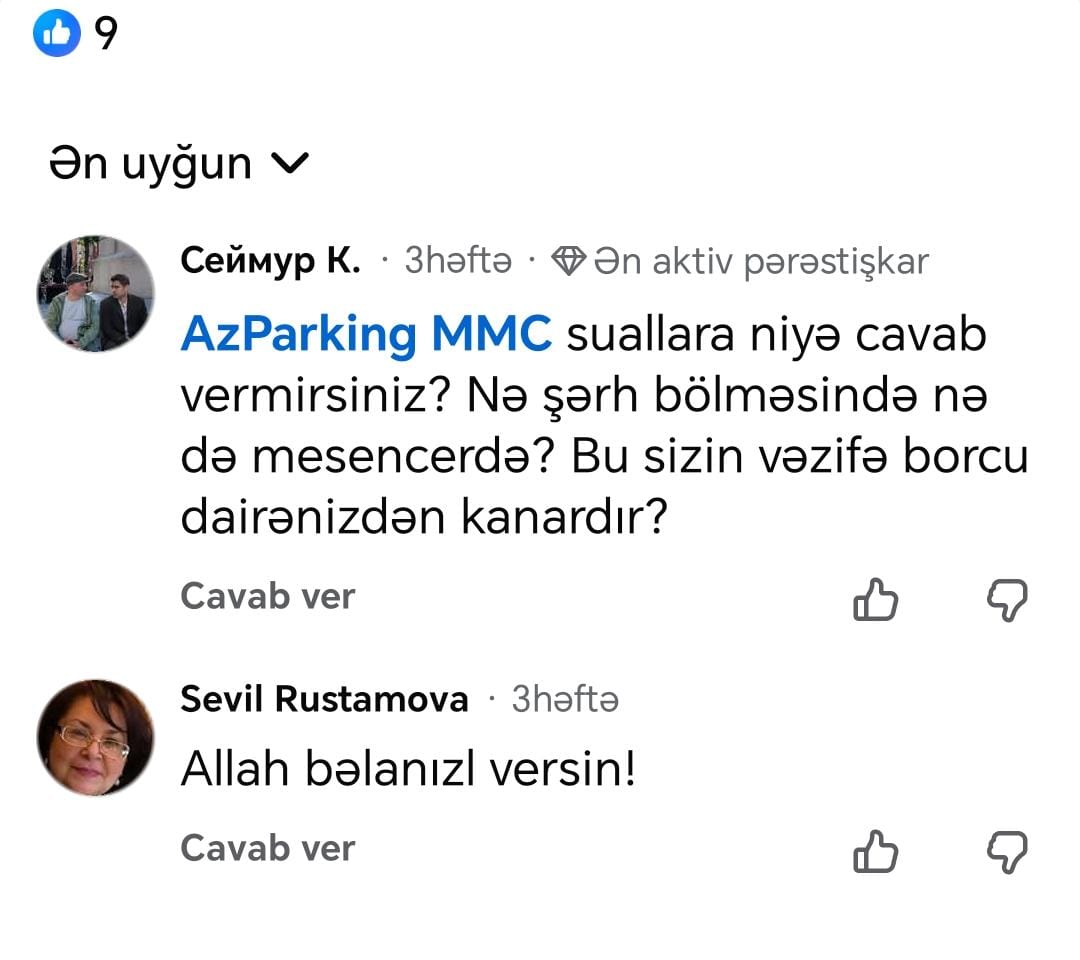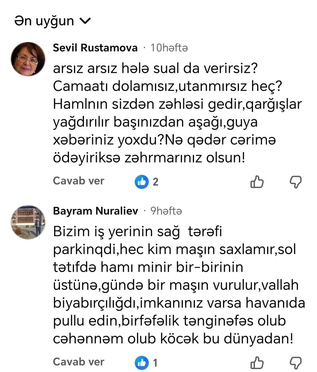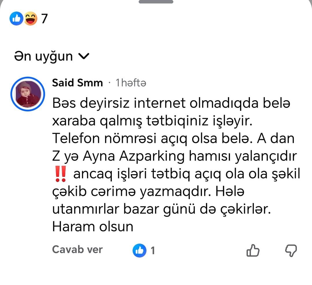 “Azparking”lə bağlı vətəndaşların yazdığı tənqidləri fikirləri, şərhləri fakt kimi təqdim edirik: