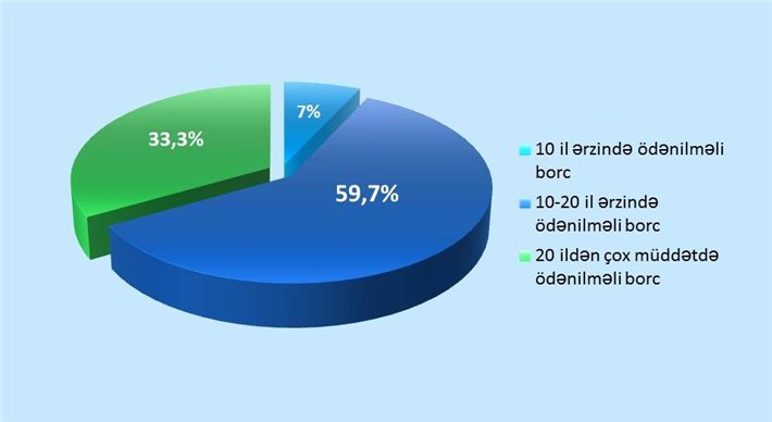 Borc yükünün artmasına dolların bahalaşması da təsir edib. Eyni zamanda bu artan dinamika neft və büdcə gəlirlərinin azalan dövrünə təsadüf edir. Maliyyə Nazirliyinin məlumatında bildirilib ki, xarici dövlət borcunun 7,0 faizi 10 ilədək olan müddətdə, 59,7 faizi 10 ildən 20 ilədək olan müddətdə, 33,3 faizi isə 20 ildən yuxarı olan müddətdə kreditorlara qaytarılmalıdır.