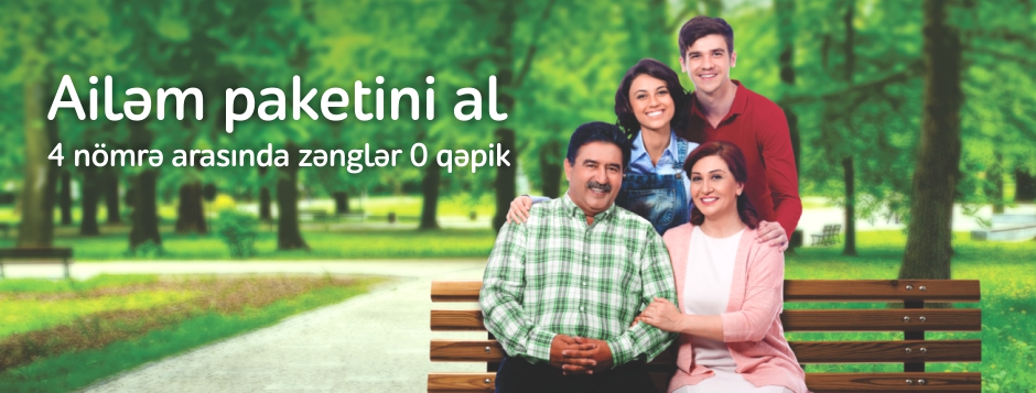 4 nömrədən ibarət olan “Ailəm” paketi Azərbaycanın mobil rabitə bazarında ilk dəfə olaraq 4 nəfərdən ibarət müxtəlif müştəri qrupları üçün pulsuz danışıq imkanıdır. Paketə daxil olan 4 nömrənin istifadəçiləri biri-birilə 31 dekabr 2015-ci il tarixədək dəqiqəsi 0 qəpiyə danışa biləcəklər. Ölkədaxili digər istiqamətlərə zəngin dəqiqəsi isə 4 qəpikdən hesablanacaq.