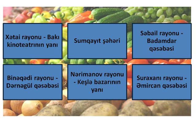 May ayında Bakı şəhər İcra Hakimiyyətindən bildirilib ki, Xətai, Nəsimi, Yasamal, Nərimanov, Səbail rayonunda kənd təsərrüfatı yarmarkaları fəaliyyətini dayandırıb. Bakı şəhər İcra Hakimiyyətinin Ticarət və Xidmət Departamentinin rəhbəri Əliabbas Bağırovun verdiyi məlumata görə, yarmarkalar şəhərin mərkəzindən yığışdırılıb. Yarmarkalar şəhərin estetik görkəminin yaxşılaşdırılması məqsədilə dayandırılıb.