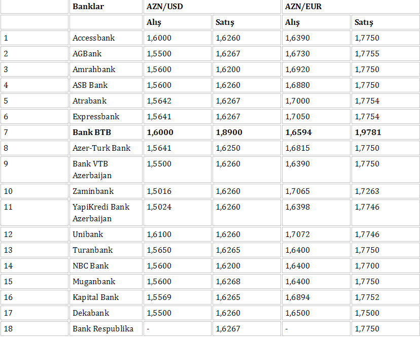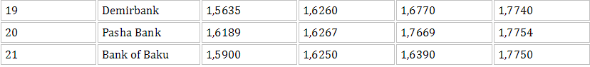 “Qafqazinfo”nun report-a istinadən məlumatına görə, bir sıra banklar bu limitə əməl etməyib. Buna müvafiq olaraq alış məzənnəsi minimal 1,5016 AZN/USD, avroda isə 1,6389 AZN/EUR-dan az olmamalıdır.