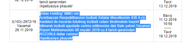 “Gilan Holdinq” MMC qərardan apelyasiya şikayəti verib.